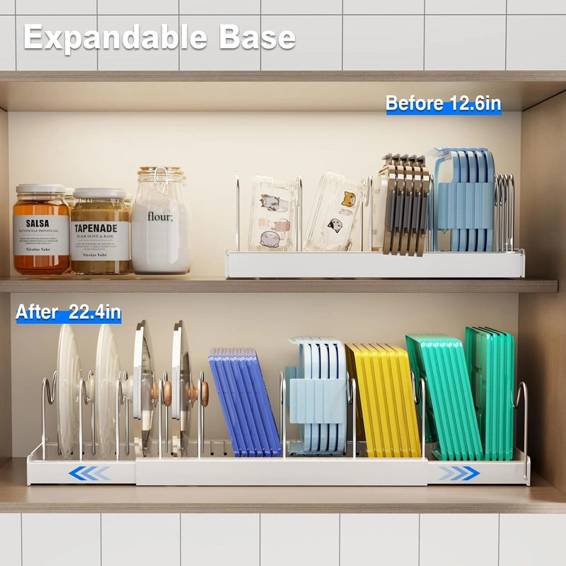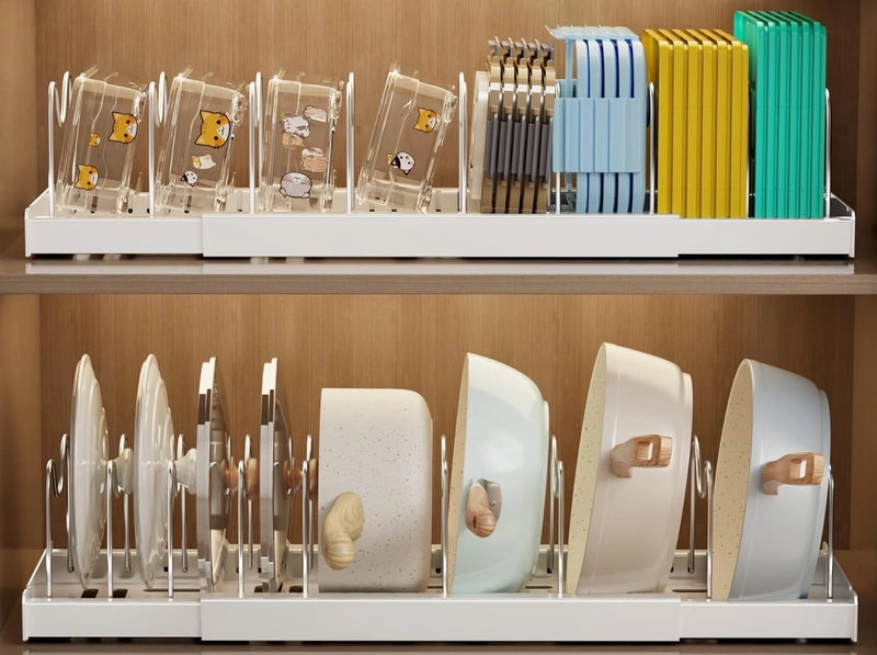 Yes, indeed! While perfect for cookware, its clever adjustable dividers make it ideal for lids, baking sheets, cutting boards, or even food storage containers. Unlock endless possibilities to organize and reclaim your cabinet's potential.